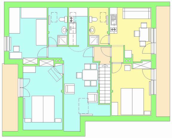 apartman: 5 fő elhelyezésére van lehetőség. Két hálószoba, WC.-fürdő, felszerelt konyha mikróval,